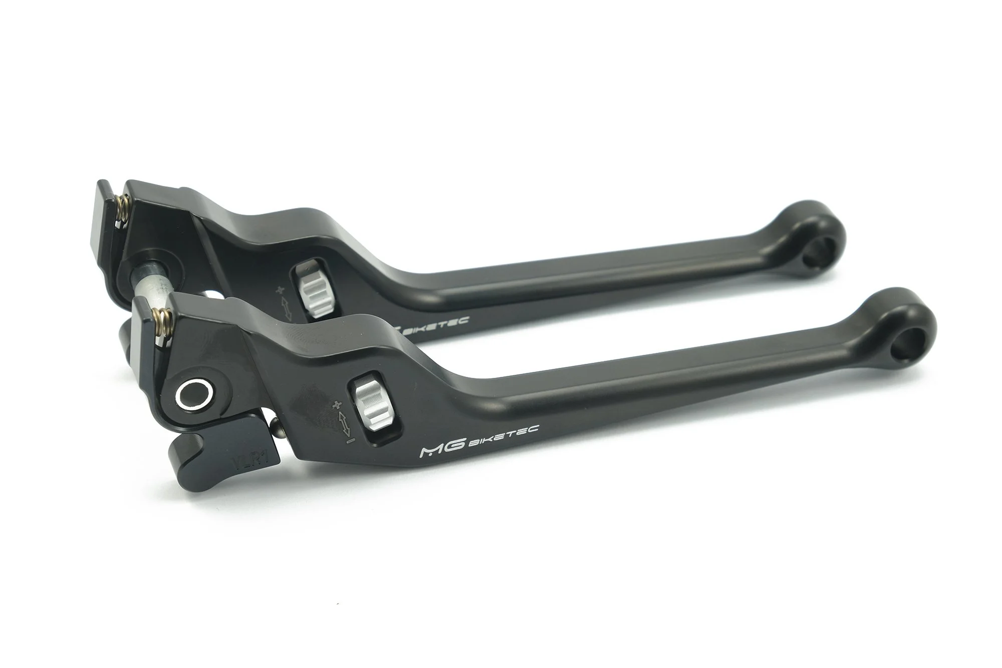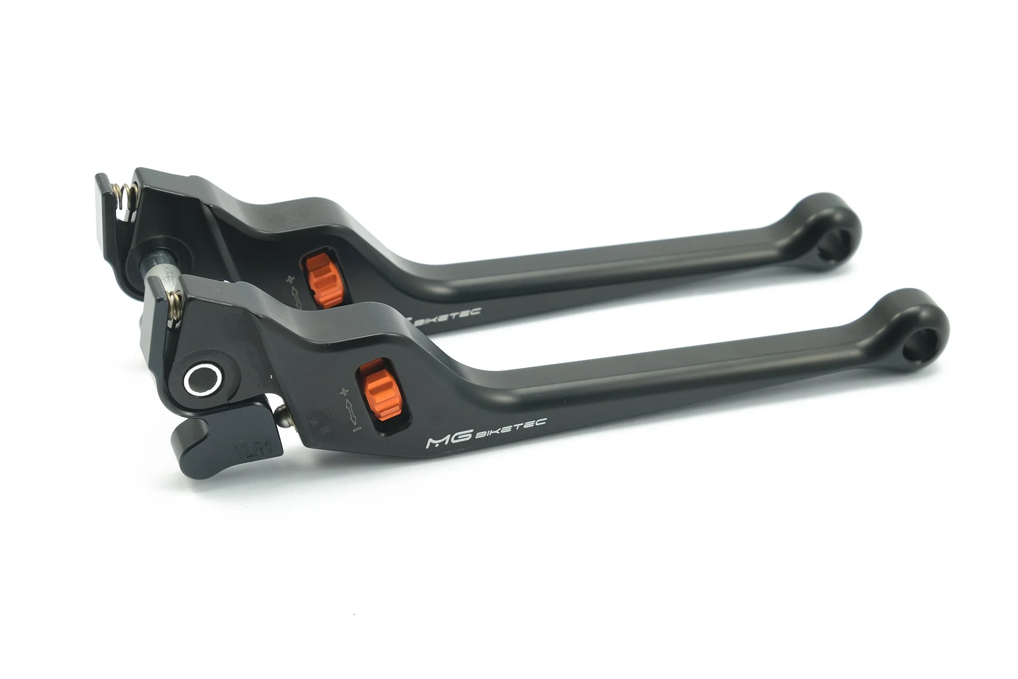 MG Biketec’s product range includes folding brake and clutch levers, sport rearsets, foot pegs, tail tidy kits, and fuel caps. Each item is designed and manufactured in Austria using CNC machining, anodizing, laser etching, and carbon prepreg techniques, ensuring durability, reliability, and precise fit.